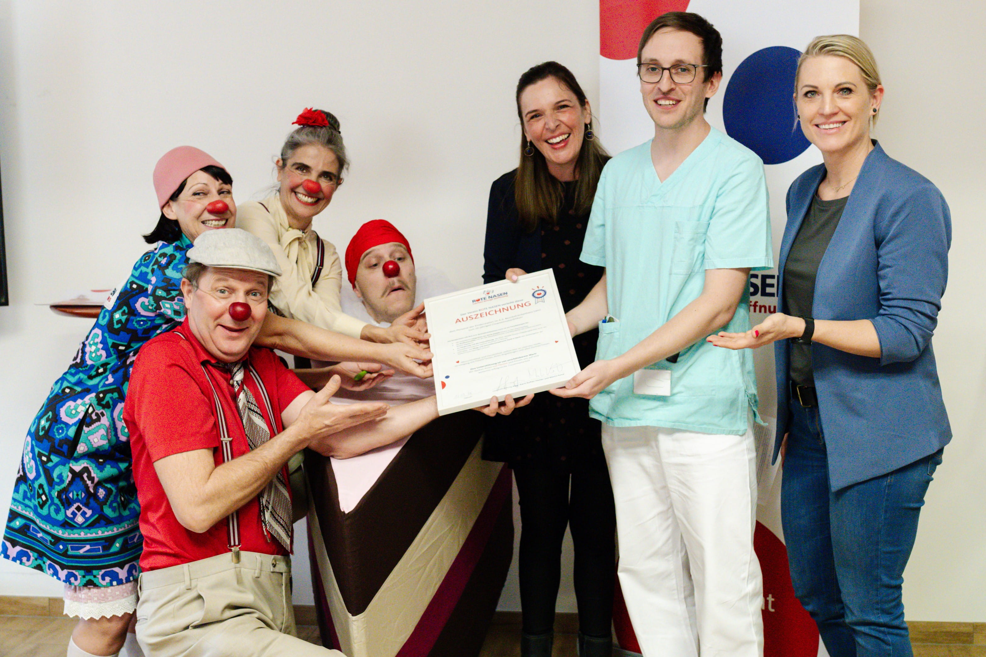 Im Rahmen der Jubiläumsfeier zeichnete ROTE NASEN die Station der Kinder- und Jugendheilkunde des Bezirkskrankenhauses Lienz als Paradebeispiel für eine langjährige, professionelle und herzliche Zusammenarbeit aus.